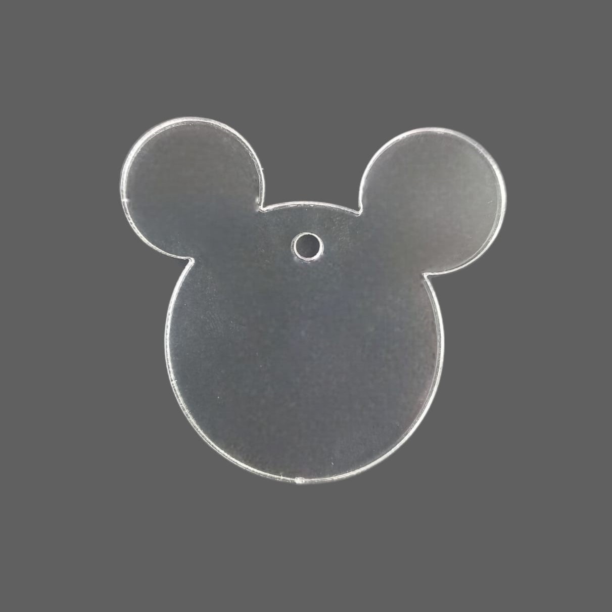 An acrylic keyring blank in the form of Mickey Mouse.